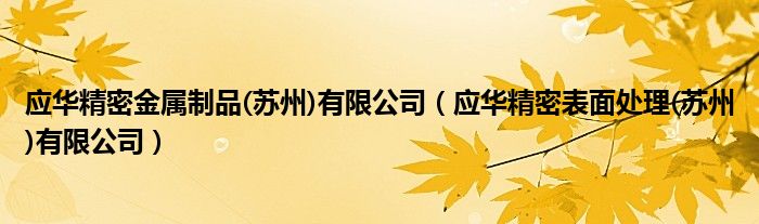 应华精密金属制品(苏州)有限公司(应华精密表面处理(苏州)有限公司)