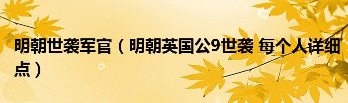 关于明朝世袭军官,明朝英国公9世袭 每个人详细点这个很多人还不知道,今天菲菲来为大家解答以上的问题,现在让我们一起来看看吧!