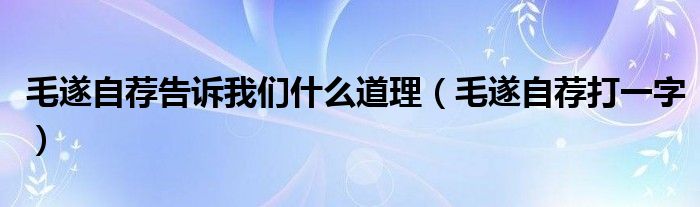 毛遂自荐告诉我们什么道理,毛遂自荐打一字这个很多人还不知道,小飞来为大家解答以上的问题。现在让我们一起来看看吧!