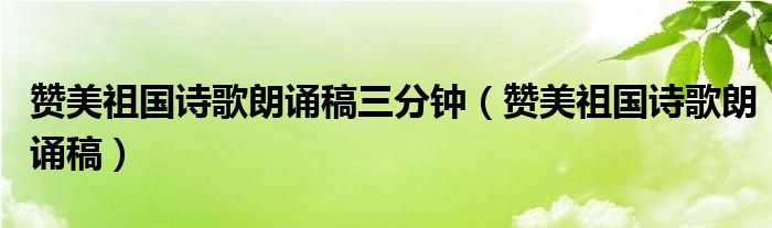 关于赞美祖国诗歌朗诵稿三分钟,赞美祖国诗歌朗诵稿这个很多人还不知道,今天菲菲来为大家解答以上的问题,现在让我们一起来看看吧!