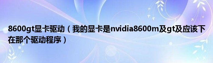 大家好,小常来为大家解答以上问题。8600gt显卡驱动,我的显卡是nvidia8600m及gt及应该下在那个驱动程序很多人还不知道,现在让我们一起来看看吧!