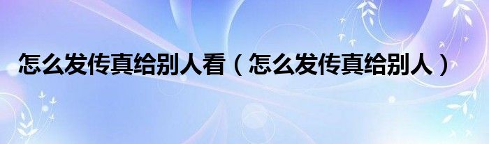 大家好,小晋来为大家解答以下问题,关于怎么发传真给别人看,怎么发传真给别人很多人还不知道,今天让我们一起来看看吧!