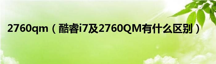 1,酷睿i7 2760QM有什么区别 :。。宝贝,有比较才有区别,一个巴掌和谁比呀? i7 2760QM主要参数:32纳米Sandy Bridge架构,四核八线程,主频2.4 ~ 3.5GHz,Socket G2接口,TDP 45W。