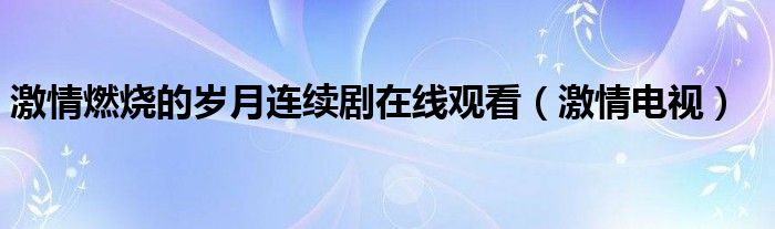 激情燃烧的岁月连续剧在线观看(激情电视)