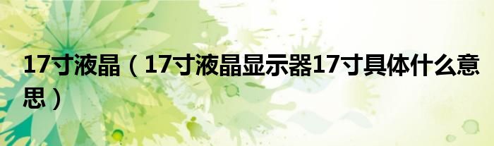 1,17寸液晶显示器17寸具体什么意思: 屏幕尺寸是指液晶显示器屏幕对角线的长度,单位为英寸。与CRT显示器不同的是,由于液晶显示器标称的屏幕尺寸就是实际屏幕显示的尺寸,所以17英寸的液晶显示器的可视面积接近19英寸的CRT纯平显示器。目前主流产品的屏幕尺寸主要以17英寸和19英寸为主。屏幕尺寸仍然是指液晶显示器屏幕对角线的长度,目前市售产品主要以19英寸为主。现在宽屏液晶显示器的屏幕比例还没有统一的标准,常见的有16:9和16:10两种。由于宽屏液晶显示器相对于普通液晶显示器具有有效可视范围更大等优势,或许会成为液晶显示器的发展方向,未来可能会成为主流。值得注意的是,在相同屏幕尺寸下,无论是16:9还是16:10的宽屏液晶显示器,其实际屏幕面积其实都要比普通的4:3液晶显示器要小。1英寸=2.54厘米