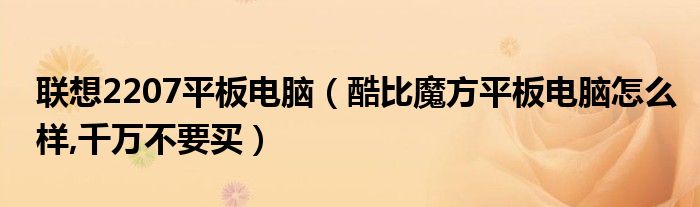 大家好,小常来为大家解答以上问题。联想2207平板电脑,酷比魔方平板电脑怎么样,千万不要买很多人还不知道,现在让我们一起来看看吧!