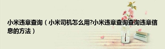 小米违章查询(小米司机怎么用?小米违章查询查询违章信息的方法)