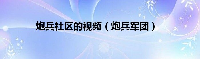 炮兵社区的视频(炮兵军团)