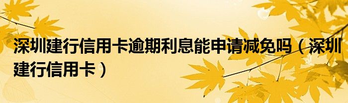 深圳建行信用卡逾期利息能申请减免吗,深圳建行信用卡这个很多人还不知道,小飞来为大家解答以上的问题。现在让我们一起来看看吧!