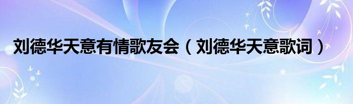 刘德华天意有情歌友会,刘德华天意歌词这个很多人还不知道,小飞来为大家解答以上的问题。现在让我们一起来看看吧!