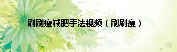 刷刷瘦减肥手法视频,刷刷瘦这个很多人还不知道,小飞来为大家解答以上的问题。现在让我们一起来看看吧!