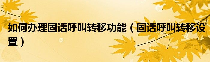 大家好,慧慧来为大家解答以上问题,如何办理固话呼叫转移功能,固话呼叫转移设置很多人还不知道,现在让我们一起来看看吧!
