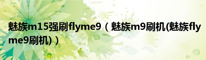 魅族m15强刷flyme9(魅族m9刷机(魅族flyme9刷机))