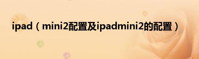 5,mini2配置苹果iPad:Ipad Mini 2 采用了 A7晶片和 更高清的屏幕iPad mini2怎么样:优点1、Retina视网膜屏iPad mini2采用Retina屏幕,屏幕中的每一个文字、图片尽显淋漓尽致的绝佳视觉体验,每一处细节彰显精致外观、绝美享受。2、A7处理器iPad mini2采用苹果双核A7处理器,在iPad上跨出了革命性的一步。这万众期待的A7芯片采用 64位处理器,在图形处理及处理器速度方面更上一层楼。3、7.9英寸2048×1536分辨率iPad mini2搭载7.9英寸、326ppi显示屏,拥有2048×1536分辨率,尽显绝佳视觉盛宴带来的极致华丽。每一处细节都精准显现,直逼眼球。4、iOS7iPad mini2搭载苹果最新操作系统iOS7,给人耳目一新的感觉,最新iOS7不仅为我们带来了许多新功能,也完美适配苹果A7处理器及64位架构体系。5、后置500万前置210万摄像头这样的摄像头配置搭载于iPad上毫不逊色,可能在其他平台手机上会或多或少出现一些瑕疵,然而iPad mini2却彰显个更出色的拍照体验。iPad mini2怎么样:缺点1、无Touch ID令人遗憾的是,iPad mini2并未配备苹果的Touch ID模块。也就错过了通过指纹扫描来增强苹果iPad mini2的安全性。2、价格相对来说,iPad mini2的价格比之前iPad mini的定价稍显昂贵,但是我们可以通过分析得出最便宜的购买方法及购买渠道。通过以下图片显示发现,港版是最实惠的购买渠道。