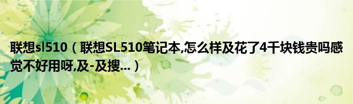 大家好,小常来为大家解答以上问题。联想sl510,联想SL510笔记本,怎么样及花了4千块钱贵吗感觉不好用呀,及-及搜...很多人还不知道,现在让我们一起来看看吧!