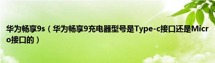 大家好,小常来为大家解答以上问题。华为畅享9s,华为畅享9充电器型号是Type-c接口还是Micro接口的很多人还不知道,现在让我们一起来看看吧!