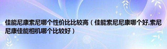佳能尼康索尼哪个性价比比较高(佳能索尼尼康哪个好,索尼尼康佳能相机哪个比较好)