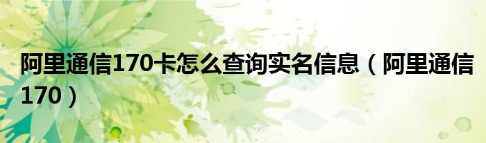 大家好,慧慧来为大家解答以上问题,阿里通信170卡怎么查询实名信息,阿里通信170很多人还不知道,现在让我们一起来看看吧!