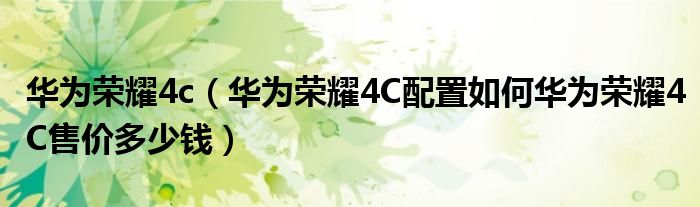 大家好,小常来为大家解答以上问题。华为荣耀4c,华为荣耀4C配置如何华为荣耀4C售价多少钱很多人还不知道,现在让我们一起来看看吧!