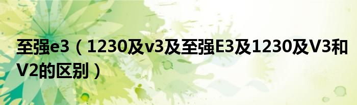大家好,小常来为大家解答以上问题。至强e3,1230及v3及至强E3及1230及V3和V2的区别很多人还不知道,现在让我们一起来看看吧!