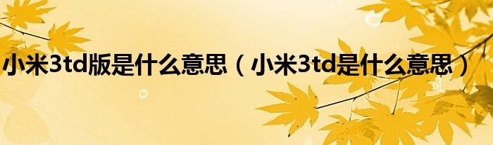 大家好,小常来为大家解答以上问题。小米3td版是什么意思,小米3td是什么意思很多人还不知道,现在让我们一起来看看吧!
