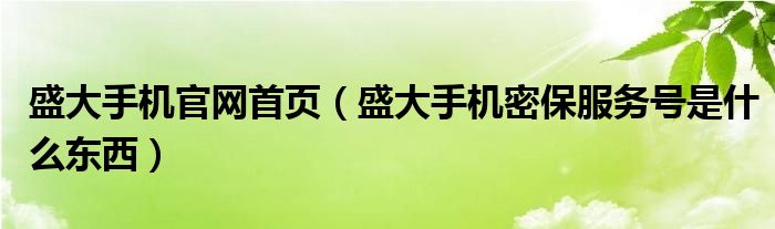 大家好,小常来为大家解答以上问题。盛大手机官网首页,盛大手机密保服务号是什么东西很多人还不知道,现在让我们一起来看看吧!