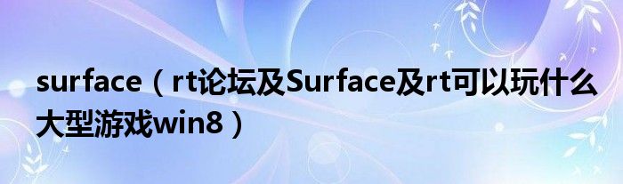 surface(rt论坛及Surface及rt可以玩什么大型游戏win8)