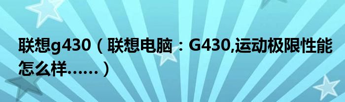 1,联想电脑:G430,运动极限。性能怎么样……:G430很一般了。价格也不高的。