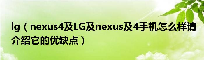 1,LG nexus 4手机怎么样请介绍它的优缺点 :很好的手机,谷歌自家的手机,由LG代工,硬件配置一流,价格给力,要说缺点嘛,就是国内不上市,比较难买到~