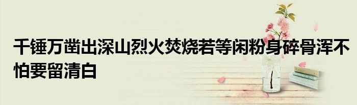 关于千锤万凿出深山烈火焚烧若等闲粉身碎骨浑不怕要留清白这个很多人还不知道,今天菲菲来为大家解答以上的问题,现在让我们一起来看看吧!