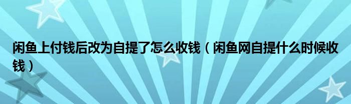 闲鱼上付钱后改为自提了怎么收钱(闲鱼网自提什么时候收钱)