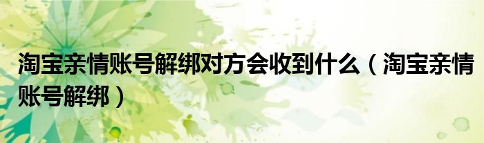 淘宝亲情账号解绑对方会收到什么(淘宝亲情账号解绑)