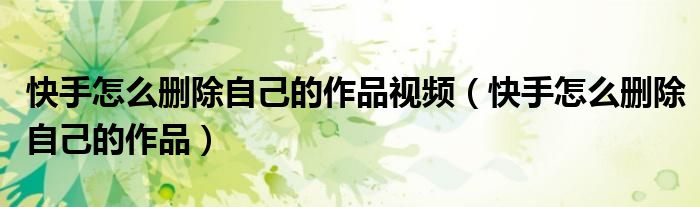 快手怎么删除自己的作品视频(快手怎么删除自己的作品)
