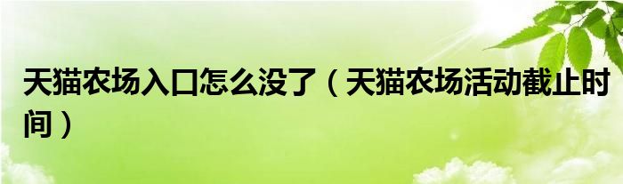 大家好,跳跳为你解答以上问题。天猫农场入口怎么没了,天猫农场活动截止时间这个问题很多人还不知道,现在让我们一起来看看吧!