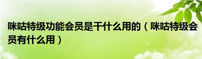 大家好,跳跳为你解答以上问题。咪咕特级功能会员是干什么用的,咪咕特级会员有什么用这个问题很多人还不知道,现在让我们一起来看看吧!