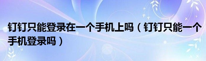 大家好,跳跳为你解答以上问题。钉钉只能登录在一个手机上吗,钉钉只能一个手机登录吗这个问题很多人还不知道,现在让我们一起来看看吧!