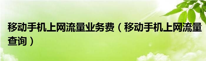 大家好,慧慧来为大家解答以上问题,移动手机上网流量业务费,移动手机上网流量查询很多人还不知道,现在让我们一起来看看吧!
