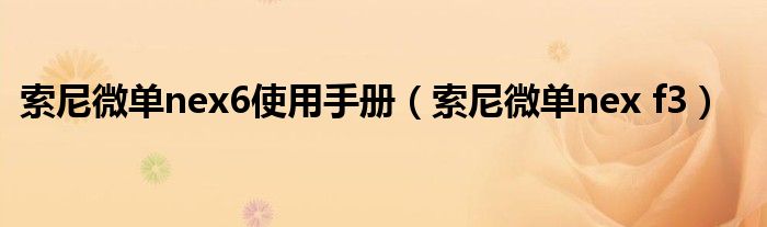 大家好,慧慧来为大家解答以上问题,索尼微单nex6使用手册,索尼微单nex f3很多人还不知道,现在让我们一起来看看吧!