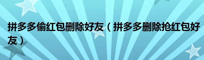 拼多多偷红包删除好友(拼多多删除抢红包好友)