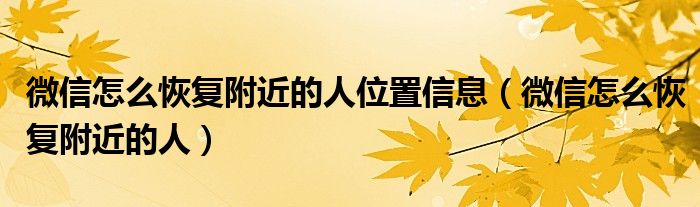 微信怎么恢复附近的人位置信息(微信怎么恢复附近的人)