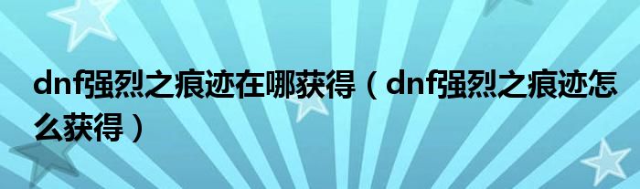 dnf强烈之痕迹在哪获得(dnf强烈之痕迹怎么获得)