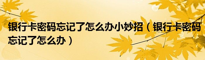 银行卡密码忘记了怎么办小妙招(银行卡密码忘记了怎么办)