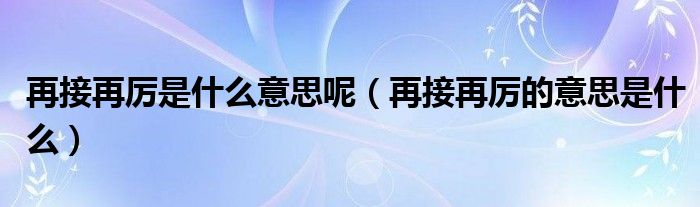 关于再接再厉是什么意思呢,再接再厉的意思是什么这个很多人还不知道,今天菲菲来为大家解答以上的问题,现在让我们一起来看看吧!