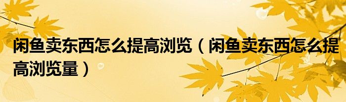 解答:1、闲鱼卖东西增加浏览量的方法;