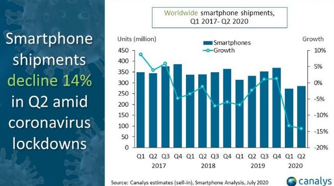 2020年第二季度,全球智能手机市场暴跌14%,而苹果公司是唯一在此期间表现出增长的公司。它出货了4510万部iPhone,比去年增长了25%。全球总计售出了2.85亿部智能手机。