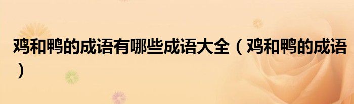 大家好,小晋来为大家解答以下问题,关于鸡和鸭的成语有哪些成语大全,鸡和鸭的成语很多人还不知道,今天让我们一起来看看吧!