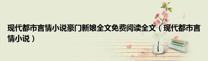 大家好,小晋来为大家解答以下问题,关于现代都市言情小说豪门新娘全文免费阅读全文,现代都市言情小说很多人还不知道,今天让我们一起来看看吧!