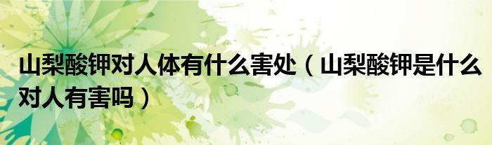 大家好,小晋来为大家解答以下问题,关于山梨酸钾对人体有什么害处,山梨酸钾是什么对人有害吗很多人还不知道,今天让我们一起来看看吧!
