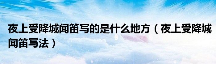 大家好,小晋来为大家解答以下问题,关于夜上受降城闻笛写的是什么地方,夜上受降城闻笛写法很多人还不知道,今天让我们一起来看看吧!