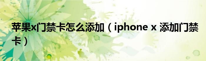 大家好,小晋来为大家解答以下问题,关于苹果x门禁卡怎么添加,iphone x 添加门禁卡很多人还不知道,今天让我们一起来看看吧!